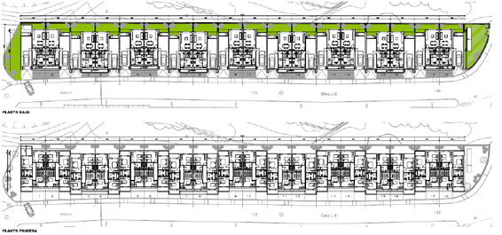 The Project is for single family terraced houses in two levels (G+1), with 90 m² (968ft2 ) livable area and roughly 118 m² (1270ft2 ) built up area, on average, plus the parking area on the ground floor with an estimated usable surface of 25 m2 (269ft2 ).