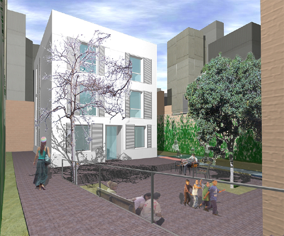 Refurbishment project of a small multi-family building and adjacent public space, access and palimpsest treatment on General Prim street at Hospitalet de Llobregat. The existing building is in very bad condition but can be rehabilitated. Some of the recently attached buildings need to be demolished. The old construction has G+2 and is located in the middle of a built-up dense block interior. The commission intends to bring some spatial quality to the site and to create a new floor space reserve of social housing.